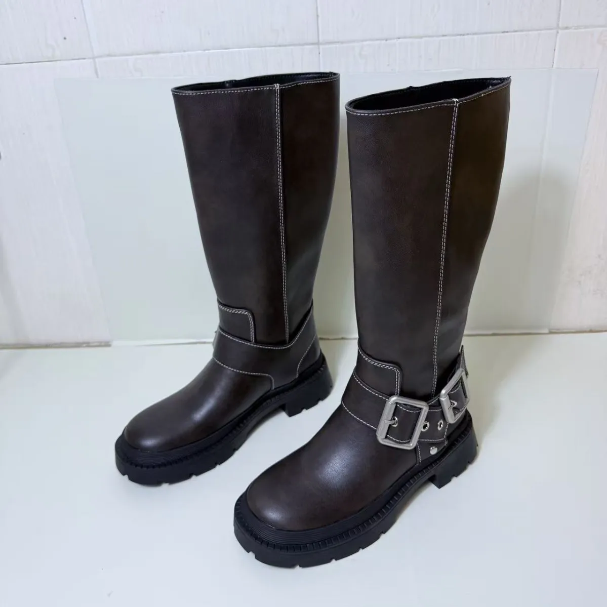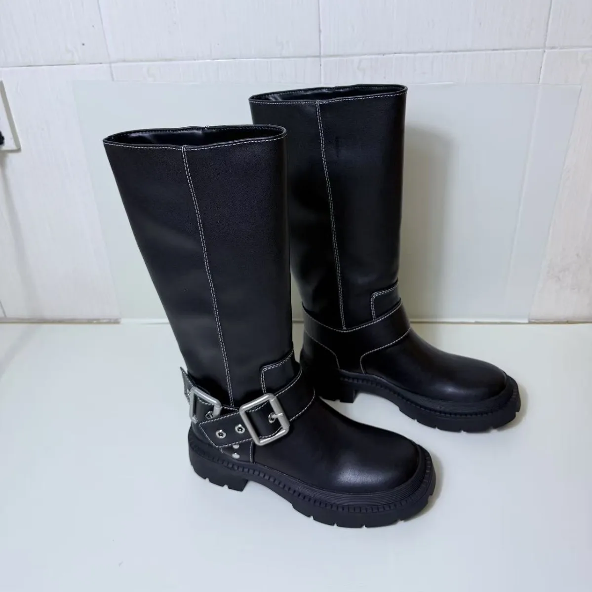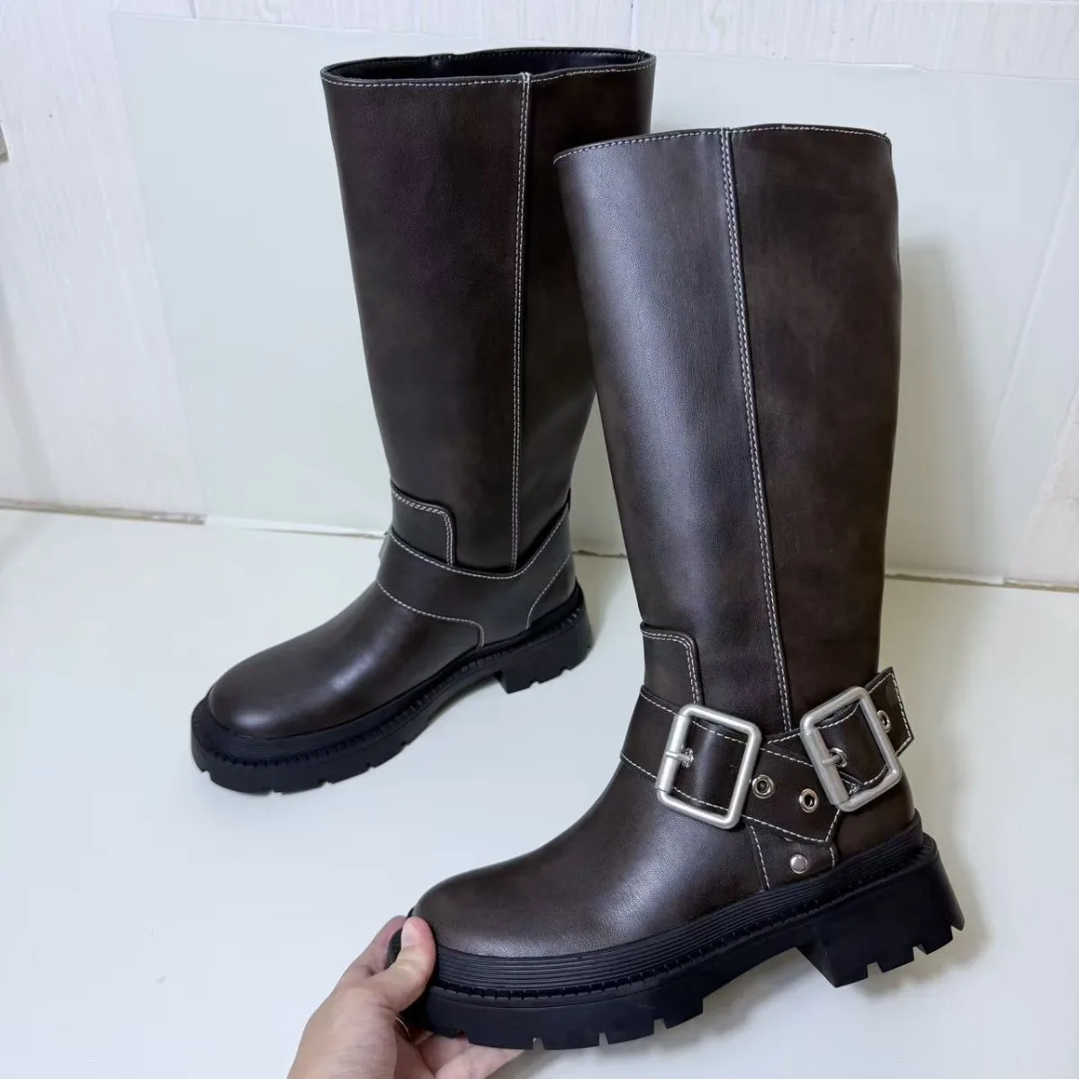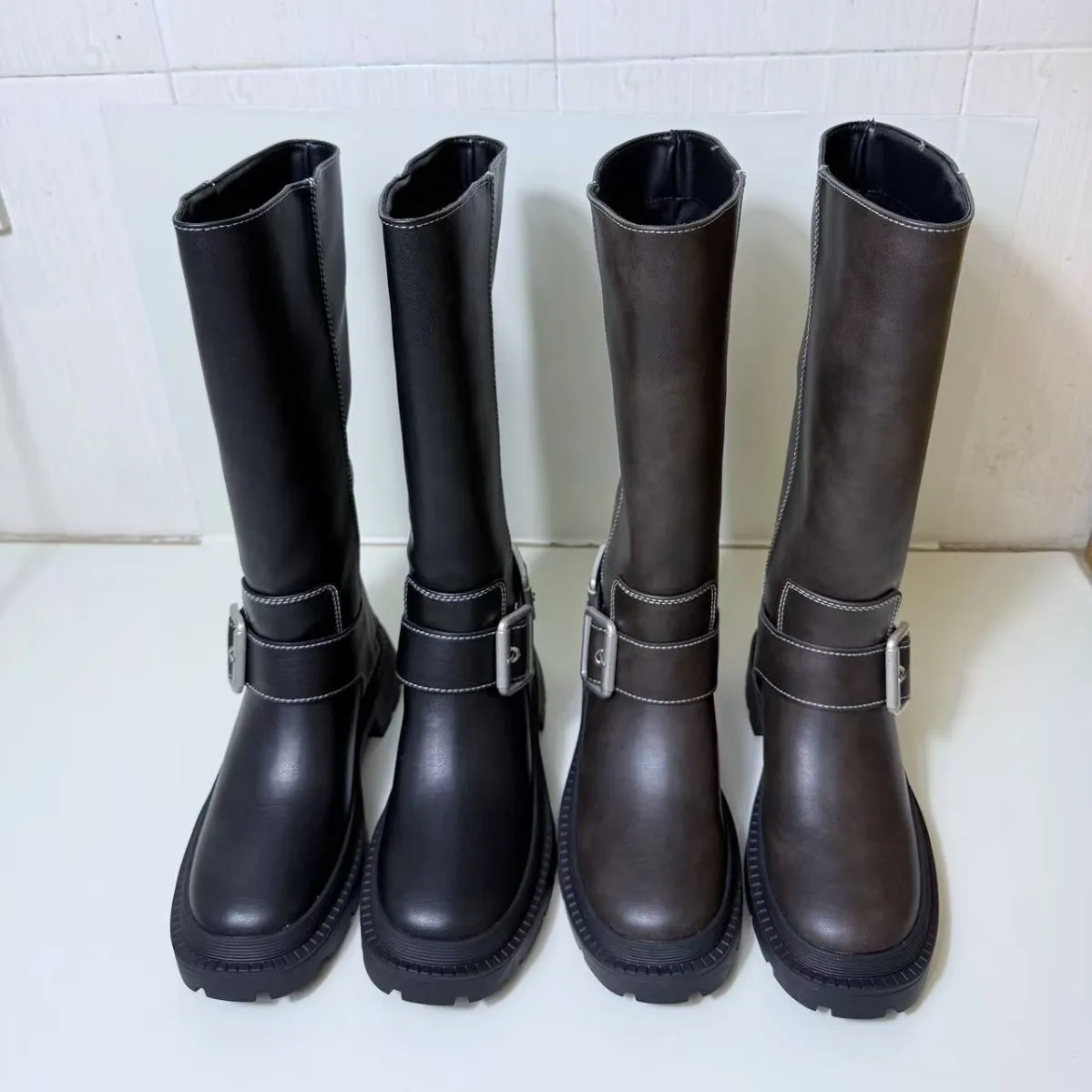 QuiteS Spring Winter New Slimming Straight Leg Belt Buckle Boots Sexy Party Casual Shoes for Women